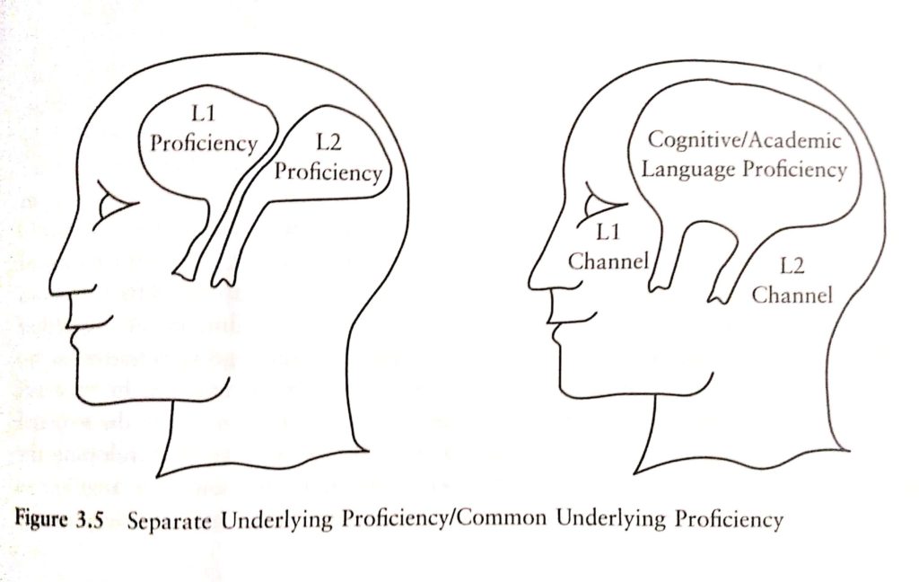 “Há duas razões pelas quais a alfabetização pode ser diferente para crianças bilíngues e monolíngues. A primeira é que os bilíngues desenvolvem várias habilidades para alfabetização de maneira diferente dos monolíngues. A segunda é que os bilíngues podem ter a oportunidade de transferir as habilidades adquiridas para ler em um idioma e ler no outro. Em ambos os casos, a relação entre os sistemas de escrita nas duas línguas determina a semelhança nas habilidades cognitivas necessárias para a leitura e também pode determinar até que ponto o bilinguismo afeta a alfabetização.”